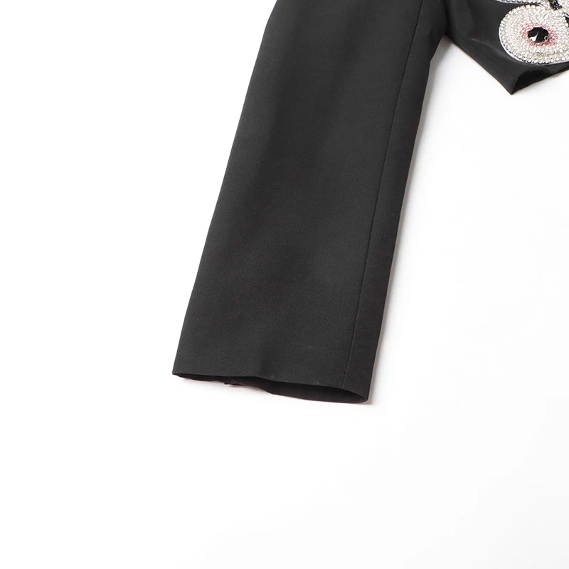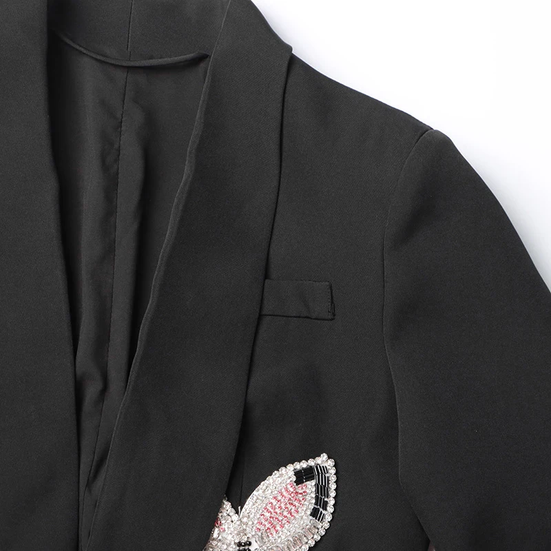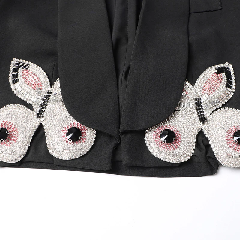 Custom Embellished Cropped Blazer Womens Black Suit Jacket with Rhinestone Butterfly Embroidery